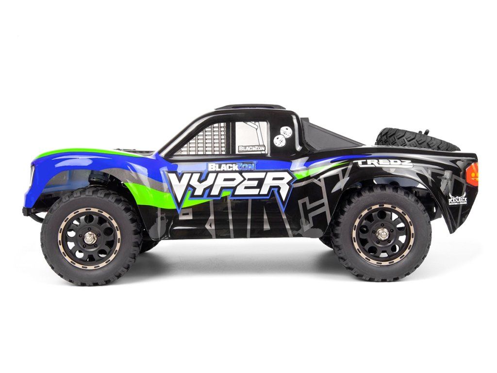 Vyper SC je snadno ovladatelný, ale velmi schopný, a je ideální jak pro začátečníky, tak pro zkušené řidiče. Přejděte na Vyper SC Turbo a věci se rychle zkomplikují, protože střídavý motor spolu s LiPo pohonným akumulátorem poskytují ostřejší zrychlení a vyšší maximální rychlost. Ať už si vyberete kterýkoliv, je to short course truck, který vás donutí vrátit se pro další jízdu.