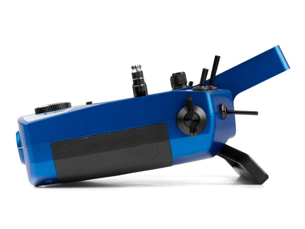 Tělo vysílače je robustní a dokonale padnoucí do ruky. Pogumované gripy na bocích a zadní straně vysílače poskytují pevný pohodlný a jistý úchop. Odtud bez obtíží dosáhnete na všechny ovladače. Gimbaly se nachází těsně u okrajů vysílače. Samozřejmě nechybí ani možnost nastavení síly neutralizačních pružin a aretace. Pro změnu módu tak stačí v nabídce nastavení zvolit požadovaný mód, a během několika okamžiků nastavit aretaci páky plynu.