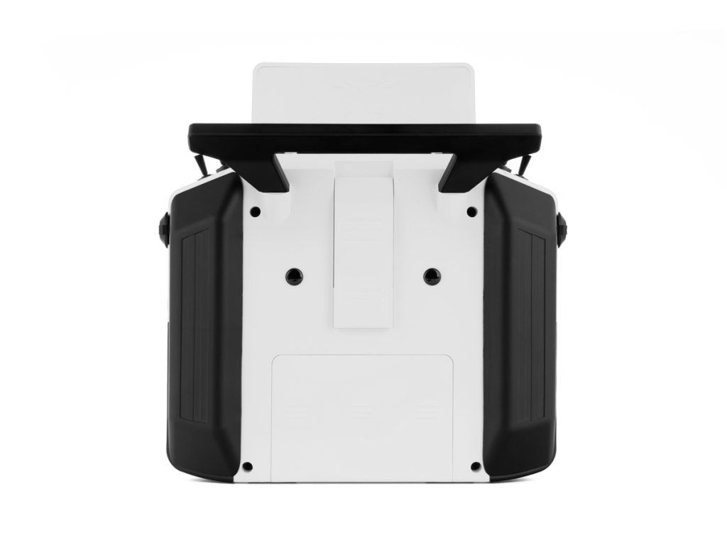 Tělo vysílače je robustní a dokonale padnoucí do ruky. Pogumované gripy na bocích a zadní straně vysílače poskytují pevný pohodlný a jistý úchop. Odtud bez obtíží dosáhnete na všechny ovladače. Gimbaly se nachází těsně u okrajů vysílače. Na komfortní držení vysílače tedy nepotřebujete ani pult. Pro maximální ergonomii lze dokoupit i dlouhé tuningové páky s přepínači.