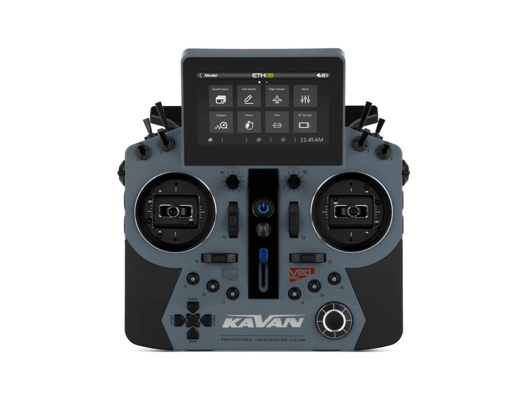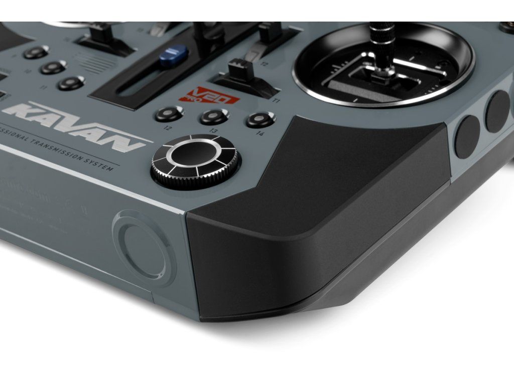 Pro ovládání dalších funkcí slouží 6 třípolohových přepínačů, 2 dvoupolohové (1 momentový) přepínače, 2 postranní otočné ovladače, 6 uživatelsky programovatelných tlačítek (vpředu) a dvě momentová tlačítka (vzadu). Vestavěný 6osý gyroskopický senzor lze nastavit pro ovládání kanálu plynu, řízení výchylek mixu a slouží i pro probuzení displeje. Páčky trimů a knoflíky jsou celokovové, precizně obráběné na CNC. Návrh rozmístění ovladačů a ergonomie těla je výsledkem několika desítek hodin testování a ladění týmem KAVAN.