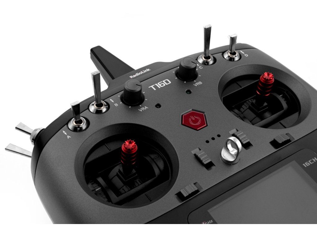 Přenosový systém: T16D používá FHSS přenos s frekvenčním přeskokem zajišťující velký dosah, spolehlivost a odolnost vůči rušení. Pro interní VF díl je možné volit tři přenosové protokoly FHSS s různými přenosovými rychlostmi (14 ms pro analogová serva, 4 nebo 3 ms pro digitální serva) dle použitého typu přijímače RadioLink a serv. Při použití telemetrického přijímače umožňuje přenos telemetrie z přijímače a také telemetrie z připojené letové řídící jednotky RadioLink, pokud ji použijete. Pro práci s externími moduly jsou k dispozici obousměrné protokoly ELRS a CRSF V2.