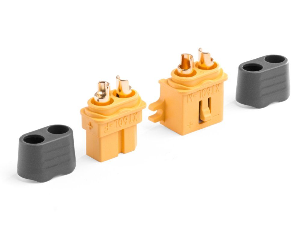 Dvoukolíkový silový konektor se 3,5 mm zlacenými kontakty se sníženým přechodovým odporem a zatížitelností max. 60 A s kryty kabelů a zásuvkou opatřenou patkami pro šrouby. Pro kabely o průřezu max. 3,3 mm2 (12AWG). Přechodový odpor 0,50 mOhm, max. 500 V. Balení 1 pár.Doplňkové parametry
