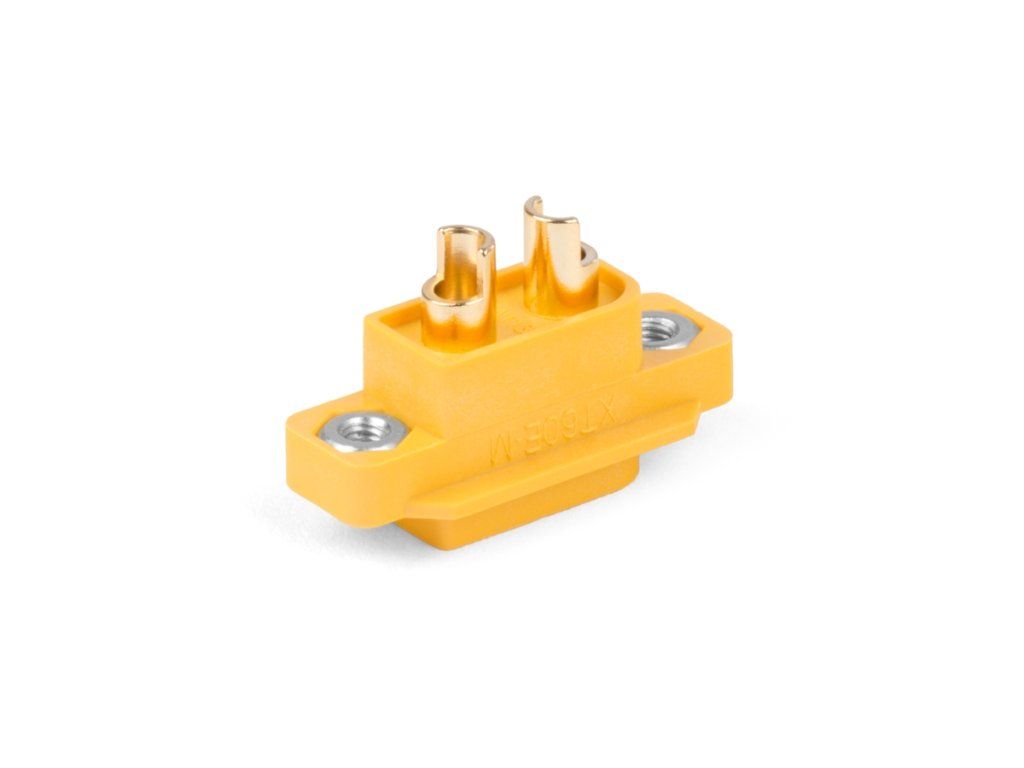 Dvoukolíkový silový konektor se 3,5 mm zlacenými kontakty se zatížitelností max. 60 A. Pro kabely o průřezu max. 3,3 mm2 (12AWG). Přechodový odpor 0,55 mOhm, max. 500 V. Varianta s upevňovacími otvory pro snadné přišroubování do modelu a jednodušší zapojování/rozpojování. Kompatibilní s běžnými XT60 (KAV36.140) a XT60 PRO (KAV36.141) konektory. Balení 100ks.Doplňkové parametry