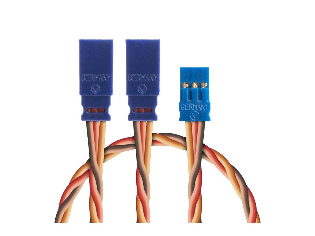 Kroucený super silný Y-kabel dlouhý s konektory JR o délce 300 mm se silikonovou izolací, průřez vodičů 0,50 mm2. Vyrobeno v Německu.