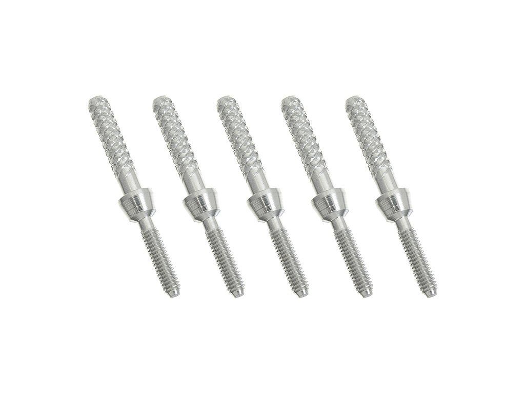 Závitová koncovka se závitem M2 je určena na vlepení do otvoru uhlíkové trubičky, průměr rýhované části je 2.5mm, uprostřed kroužek šířky 2,8mm.