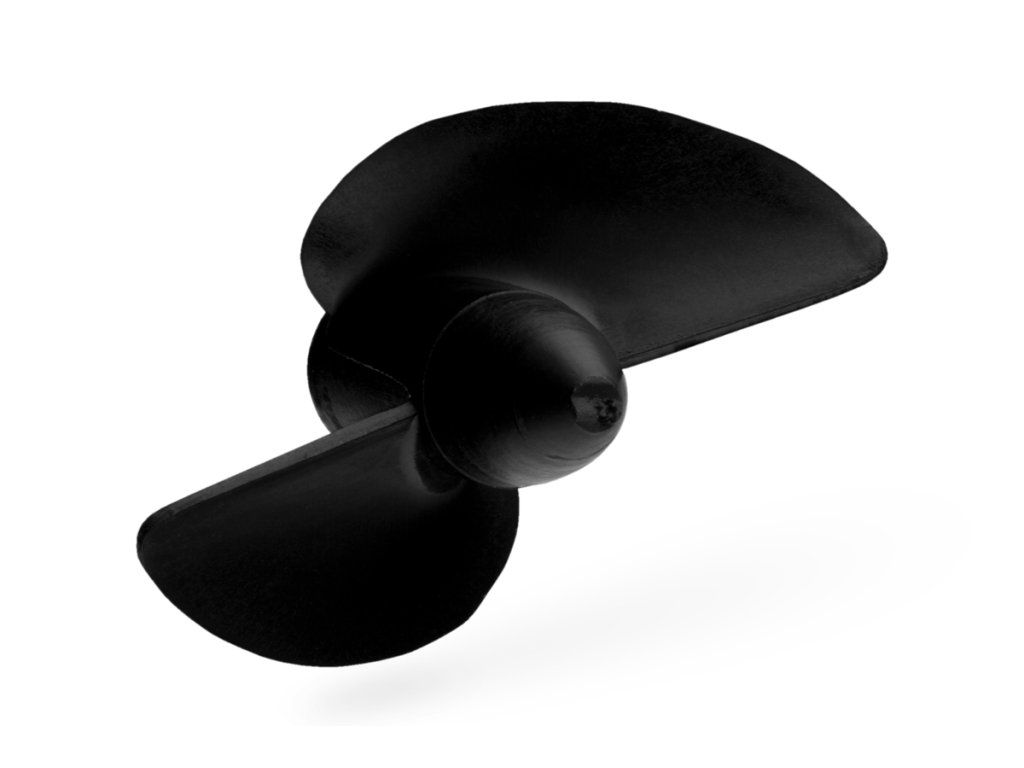 Dvoulistý lodní šroub Hydro-K pro montáž v poloponořeném stavu, stoupání 1,4x průměr, plast plněný uhlíkem, závit M4.Doplňkové parametry